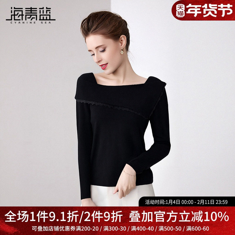 海青蓝 针织打底衫女2025年秋冬新款女装高级好看洋气方领上衣