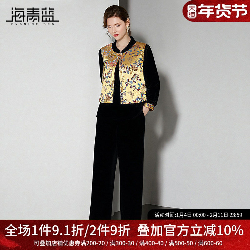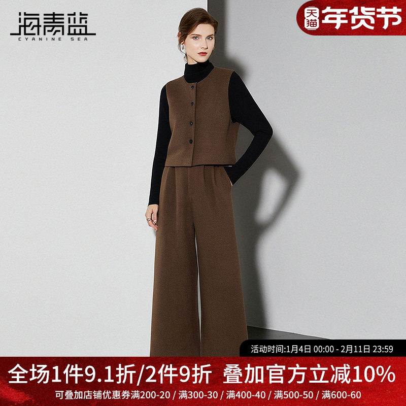 海青蓝 三件套装女2025新款冬装高级气质中式女装两件套休闲裤