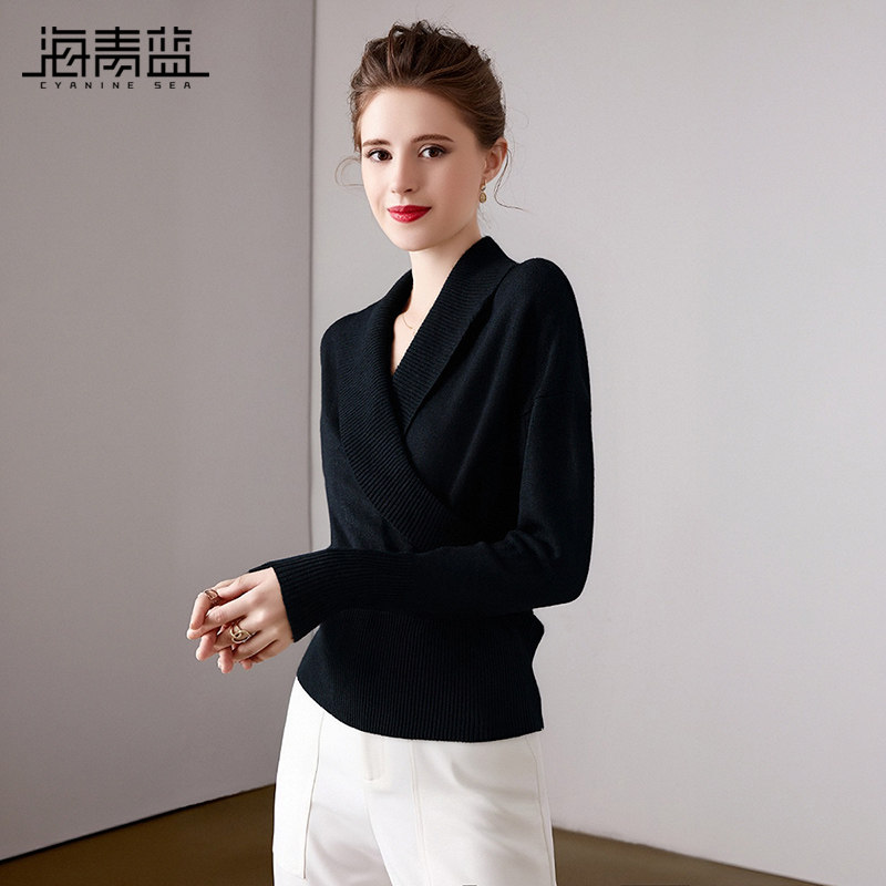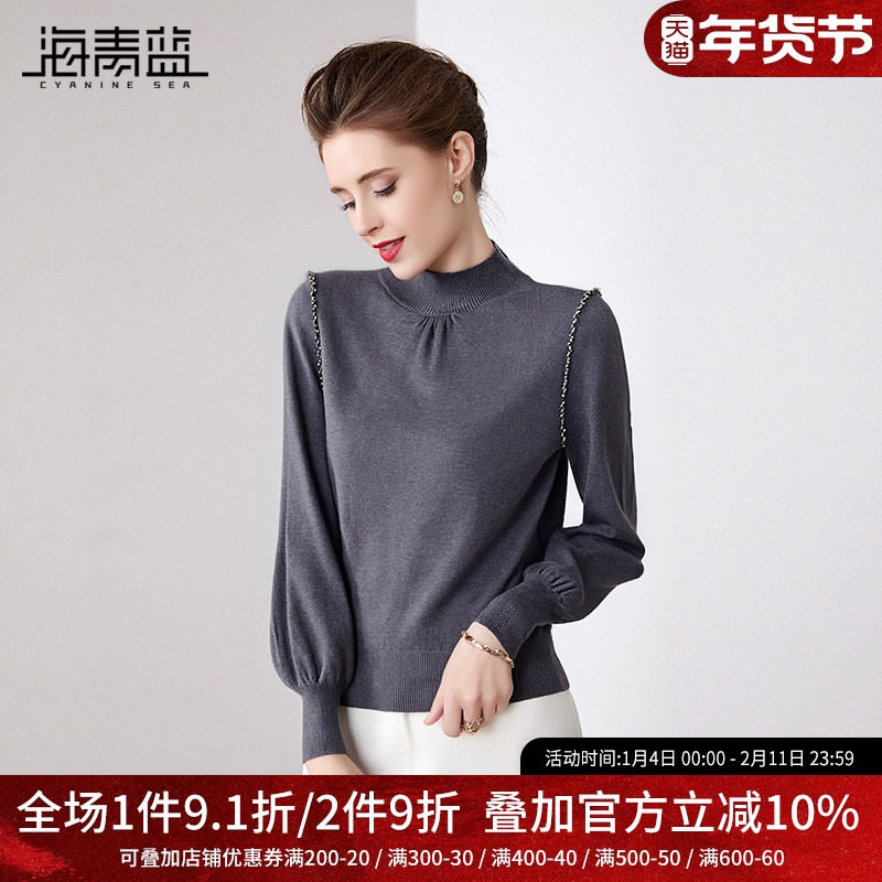 海青蓝 纯色针织衫2025年新款秋冬内搭打底长袖高级时尚女装上衣