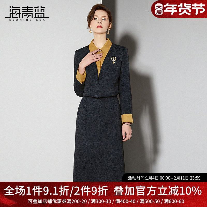 海青蓝 秋冬套装女装2025年新款高级时尚气质女装半身裙两件套