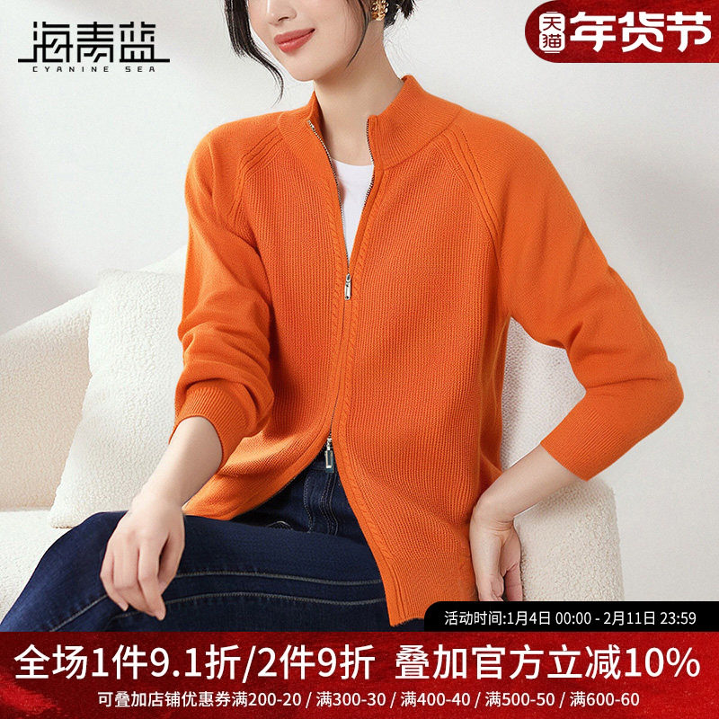 海青蓝 开衫外套针织衫女2025新款长袖毛衣女装高级慵懒秋冬上衣