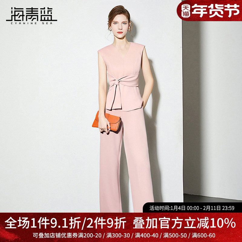 海青蓝 无袖套装女2025年新款夏季高级设计纯色休闲裤女装两件套