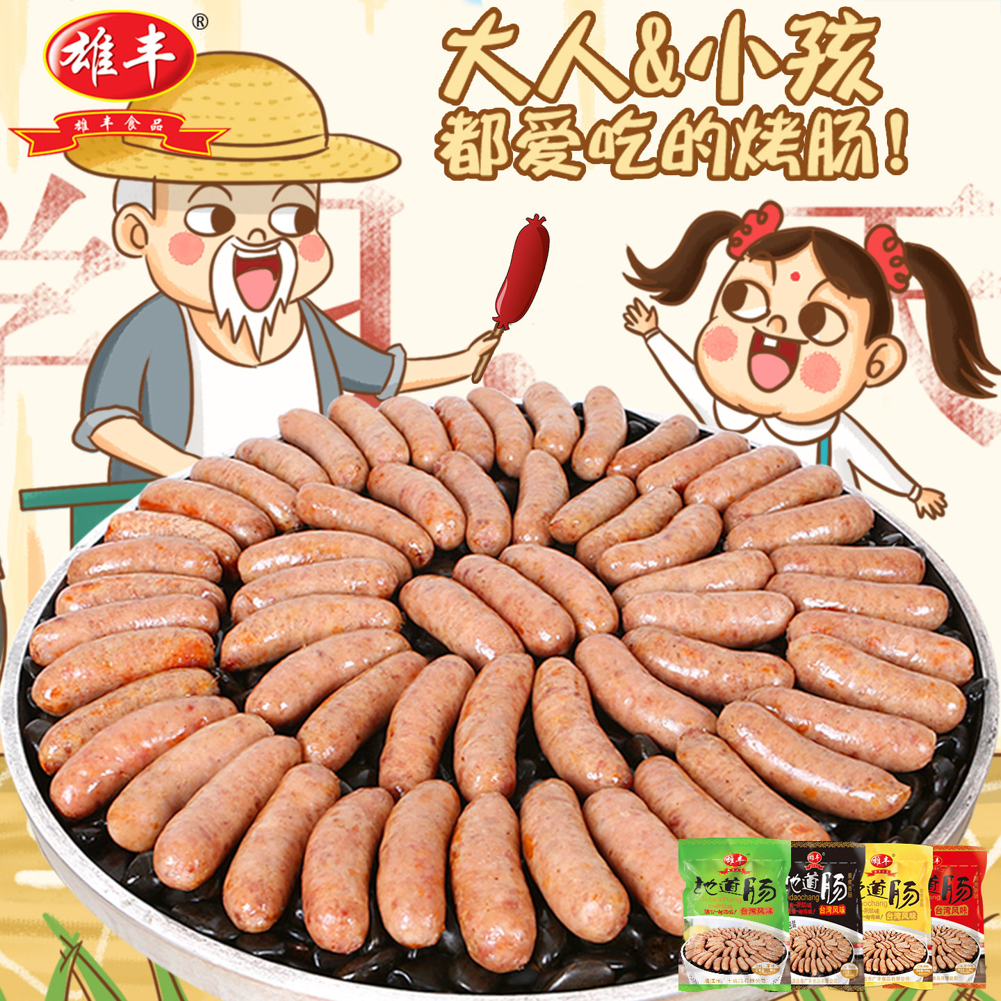 雄丰 地道肠纯火山石烤肠1500g热狗烧烤香肠肉肠烧烤肠批发