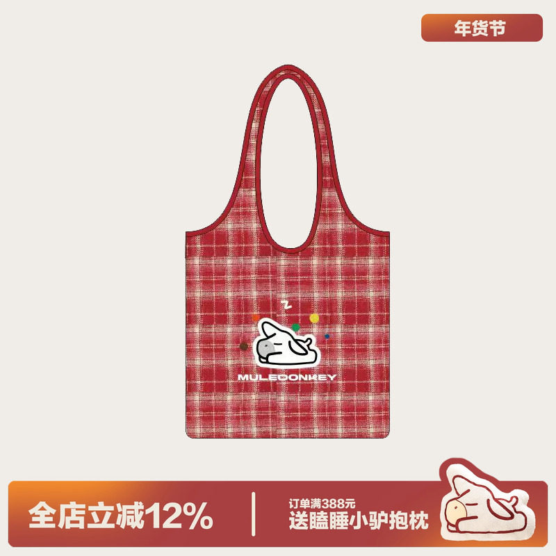 多嘴驴Donkey红色托特包女款可爱百搭帆布包大容量通勤手提单肩包