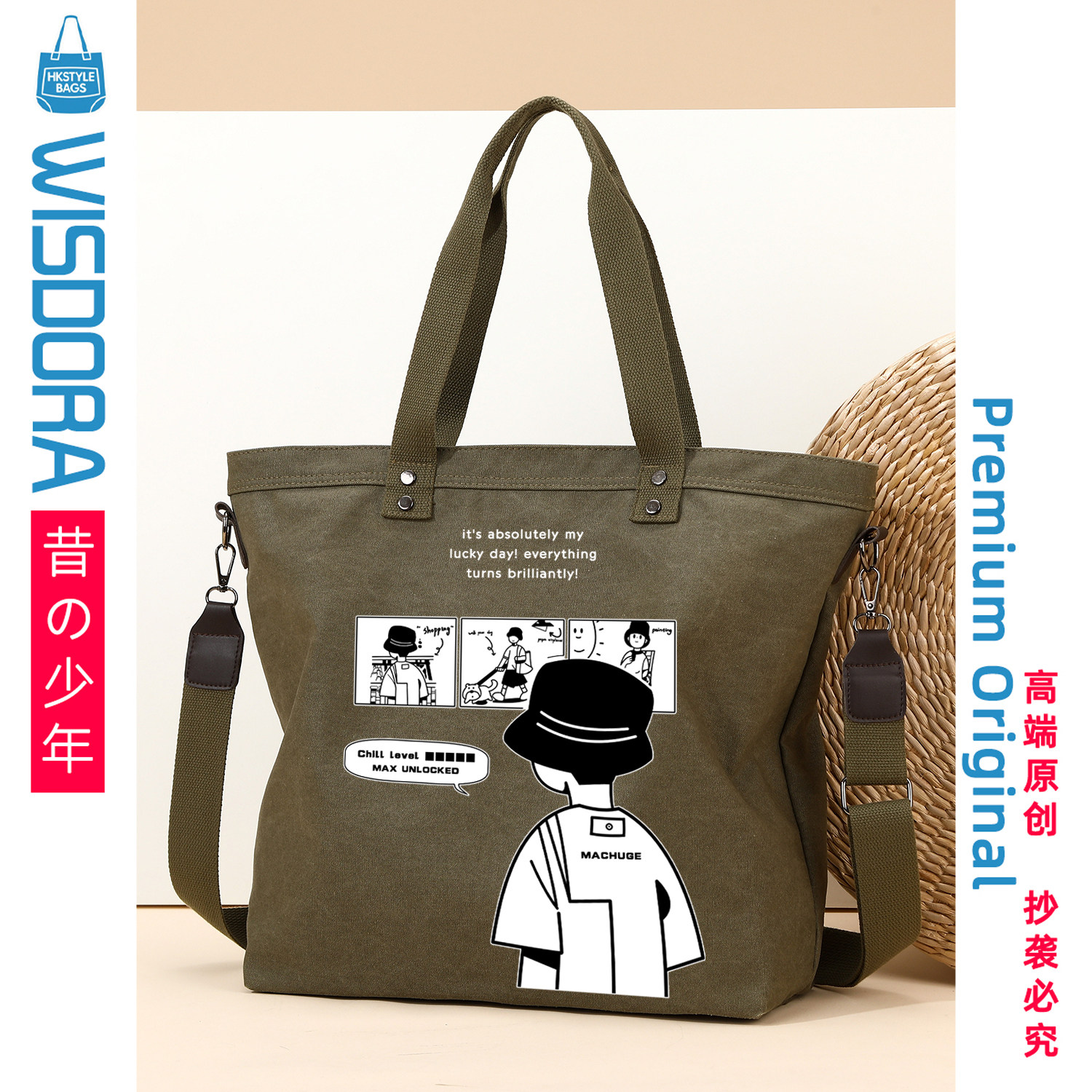 斜挎手提包纯色帆布男2025新款原创图案定制大容量单肩男女款托特