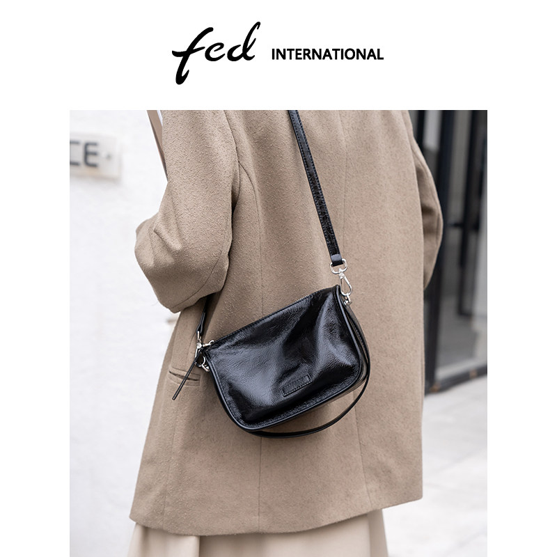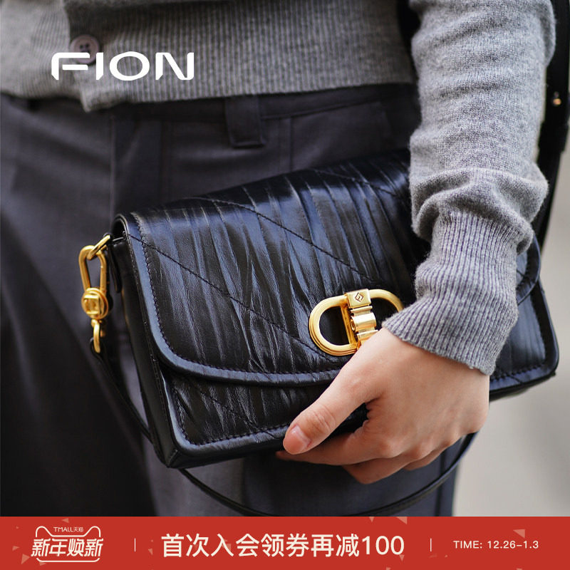 Fion/菲安妮真皮回音法棍腋下包女新款小众小方包单肩斜挎包包