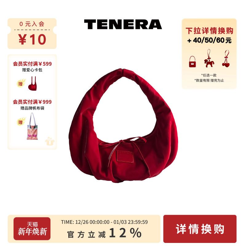 TENERA丝绒系列小号芭蕾hobo单肩斜挎包包女手提腋下包通勤大容量