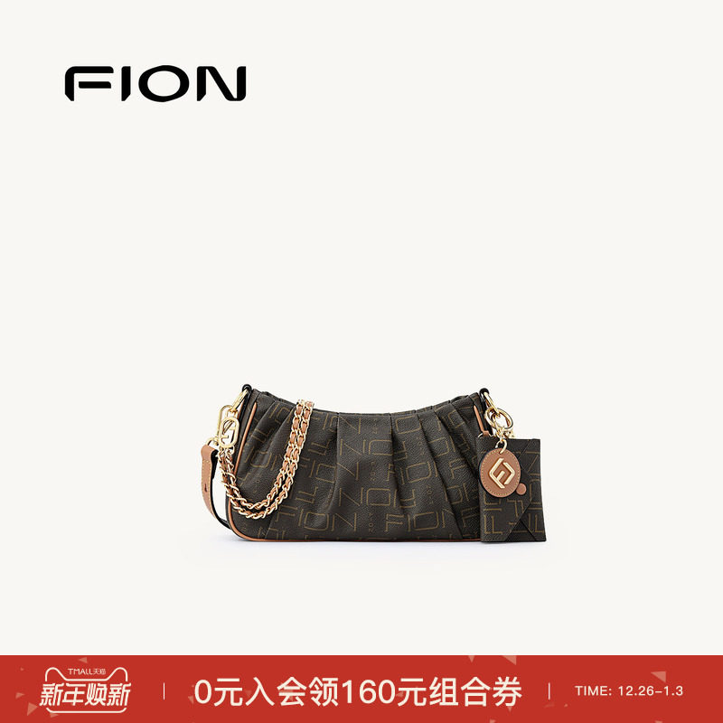 Fion/菲安妮老花褶皱腋下包新款高级感小众法棍包单肩斜挎包包女