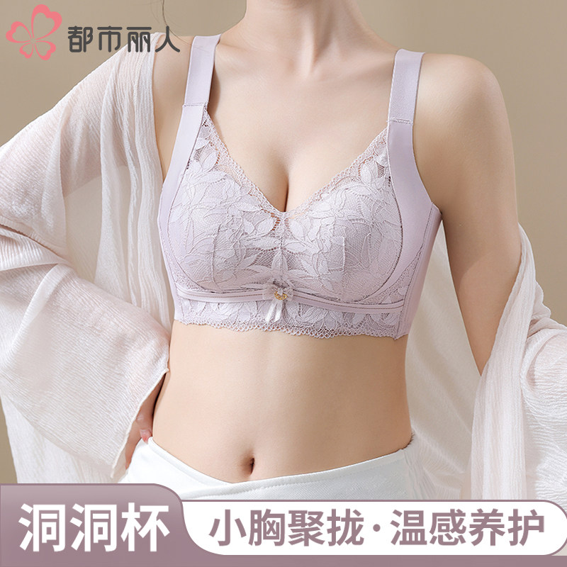 【洞洞杯】都市丽人内衣女舒适透气夏无钢圈蕾丝大胸显小聚拢文胸