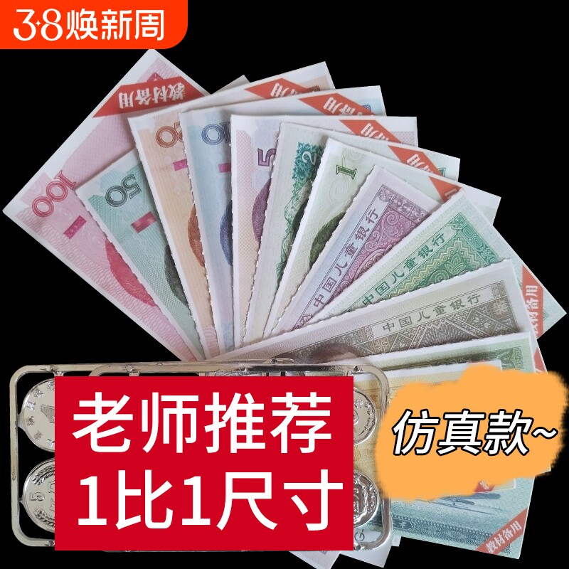 一二年级上下册数学认识人民币学习教具纸币票样小学生儿童钱币道具元角分换算仿真学具钞票模型教学用套装北师大版练习专项硬币