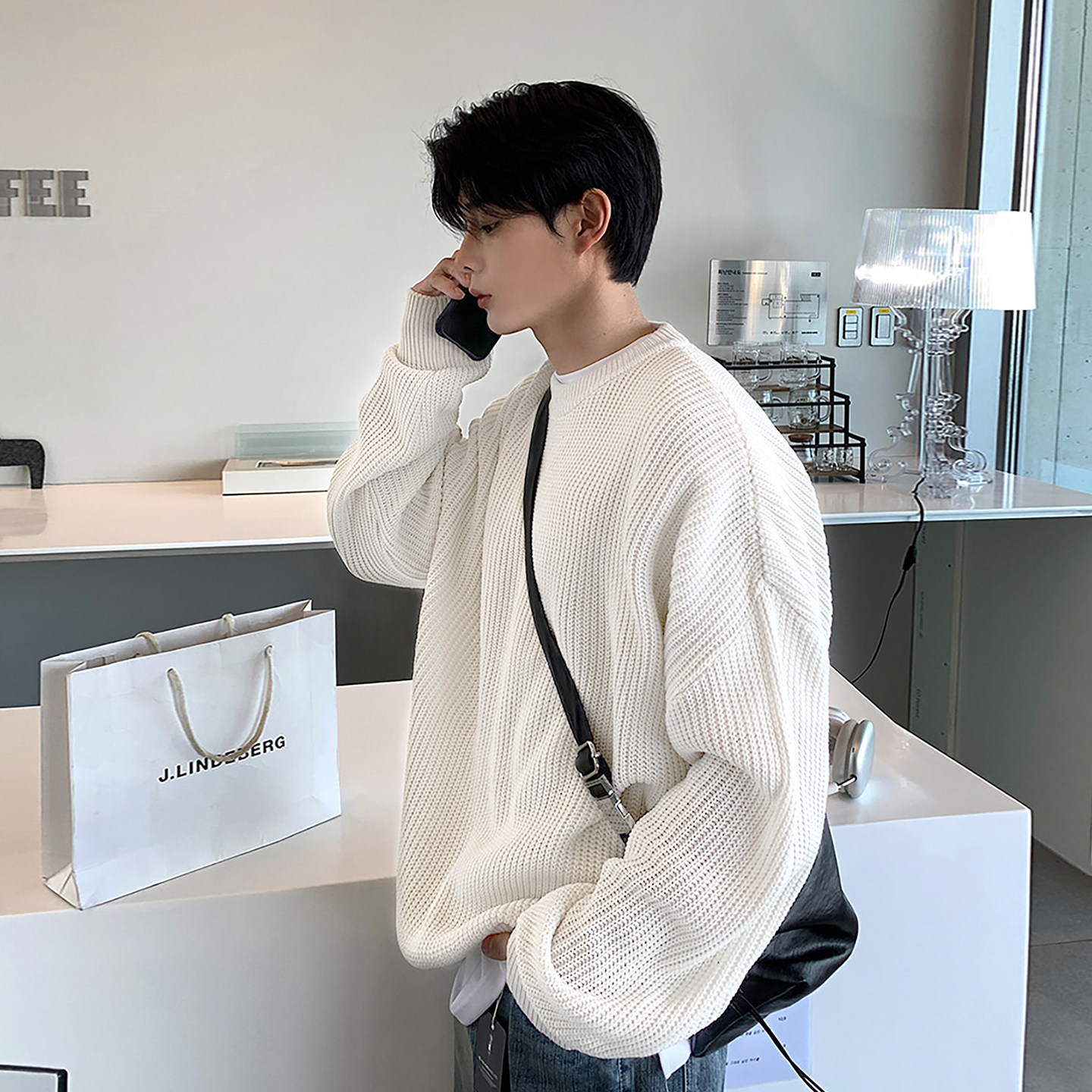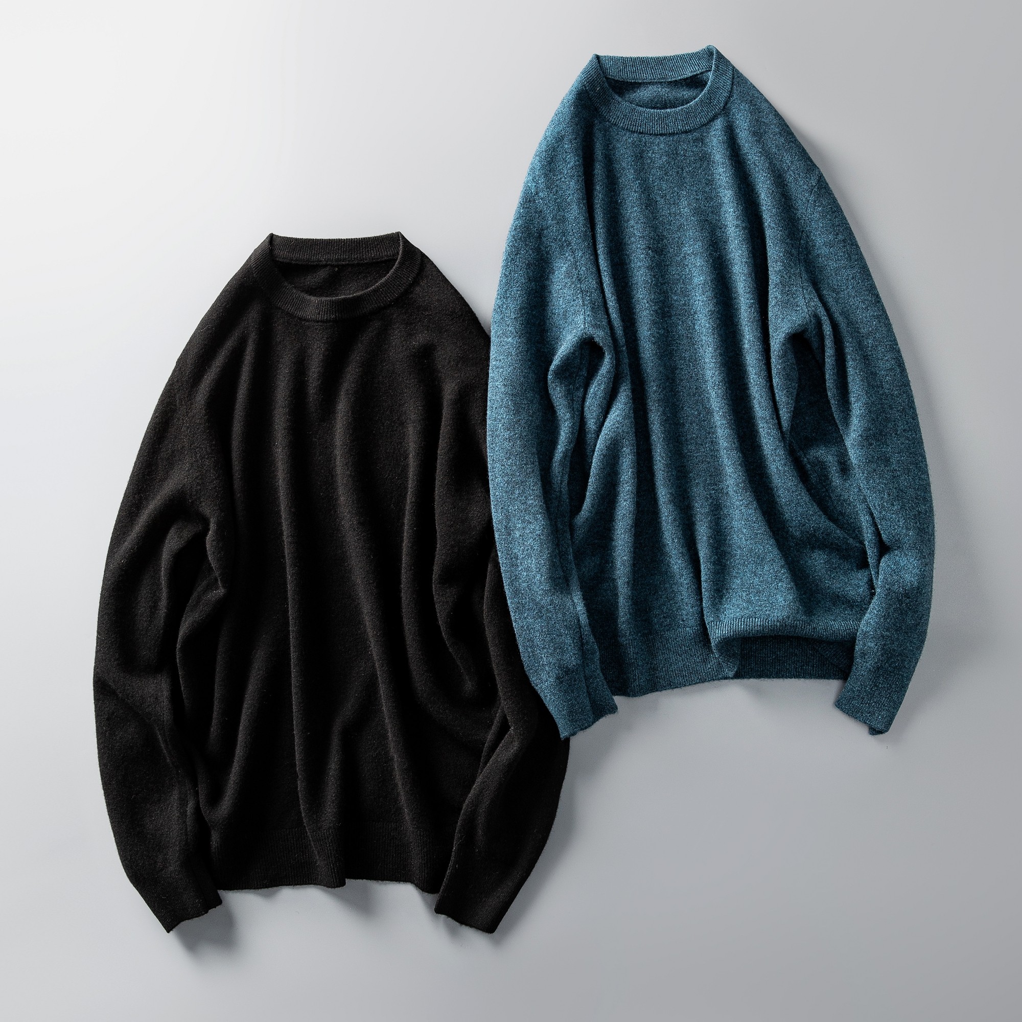 冬季纯羊毛针织衫男 老钱风高支双股软糯温暖纯色圆领毛衣打底衫
