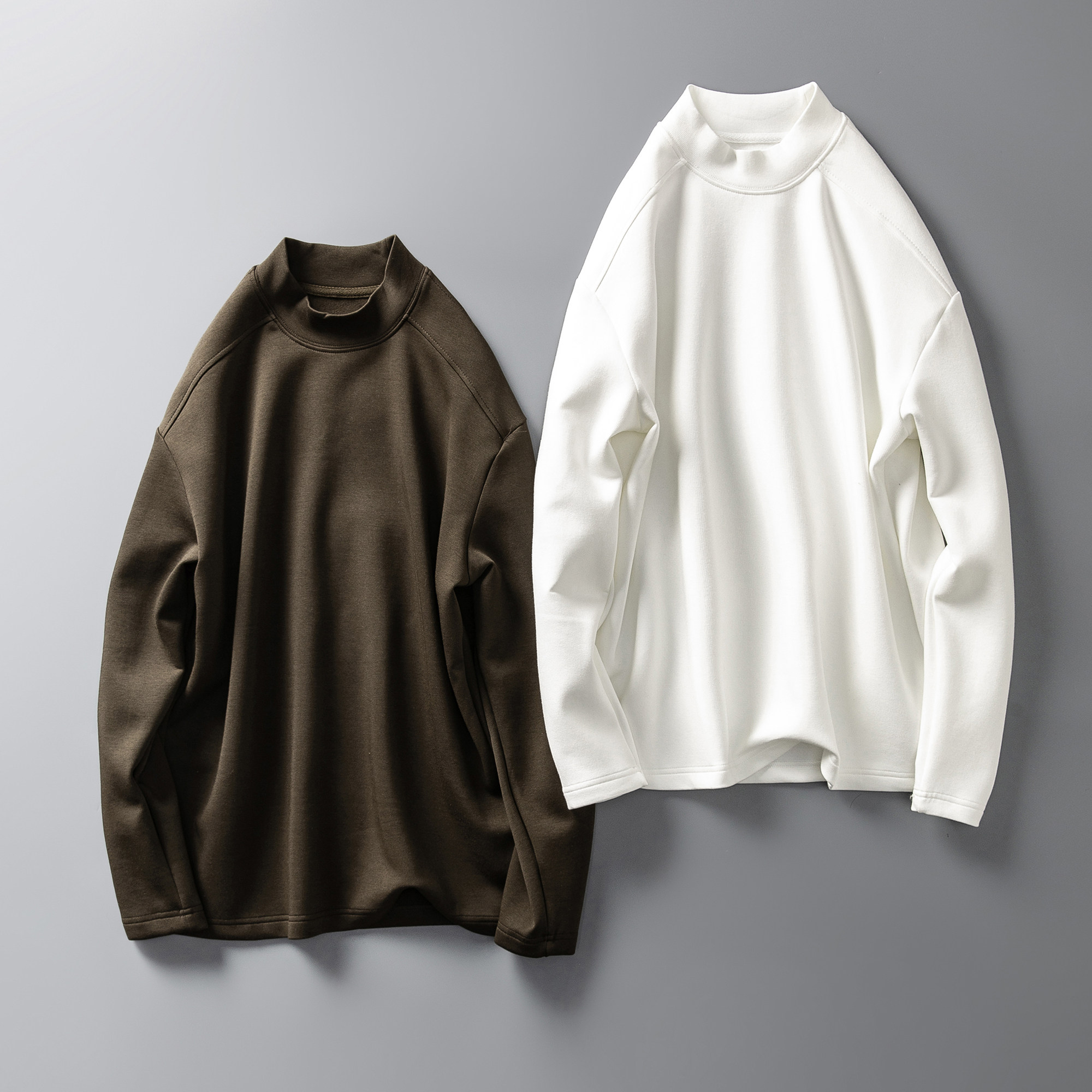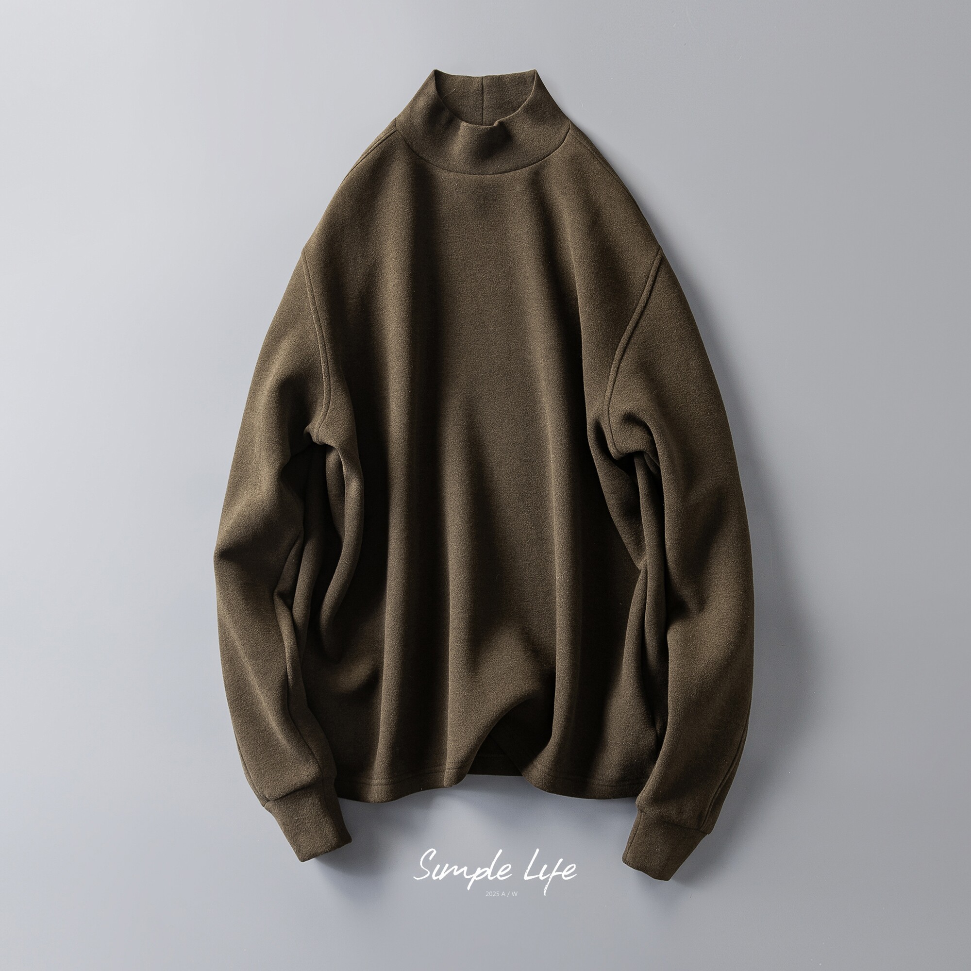 冬季加厚羊毛混纺双面绒半高领打底衫男 软糯保暖宽松中领长袖T恤