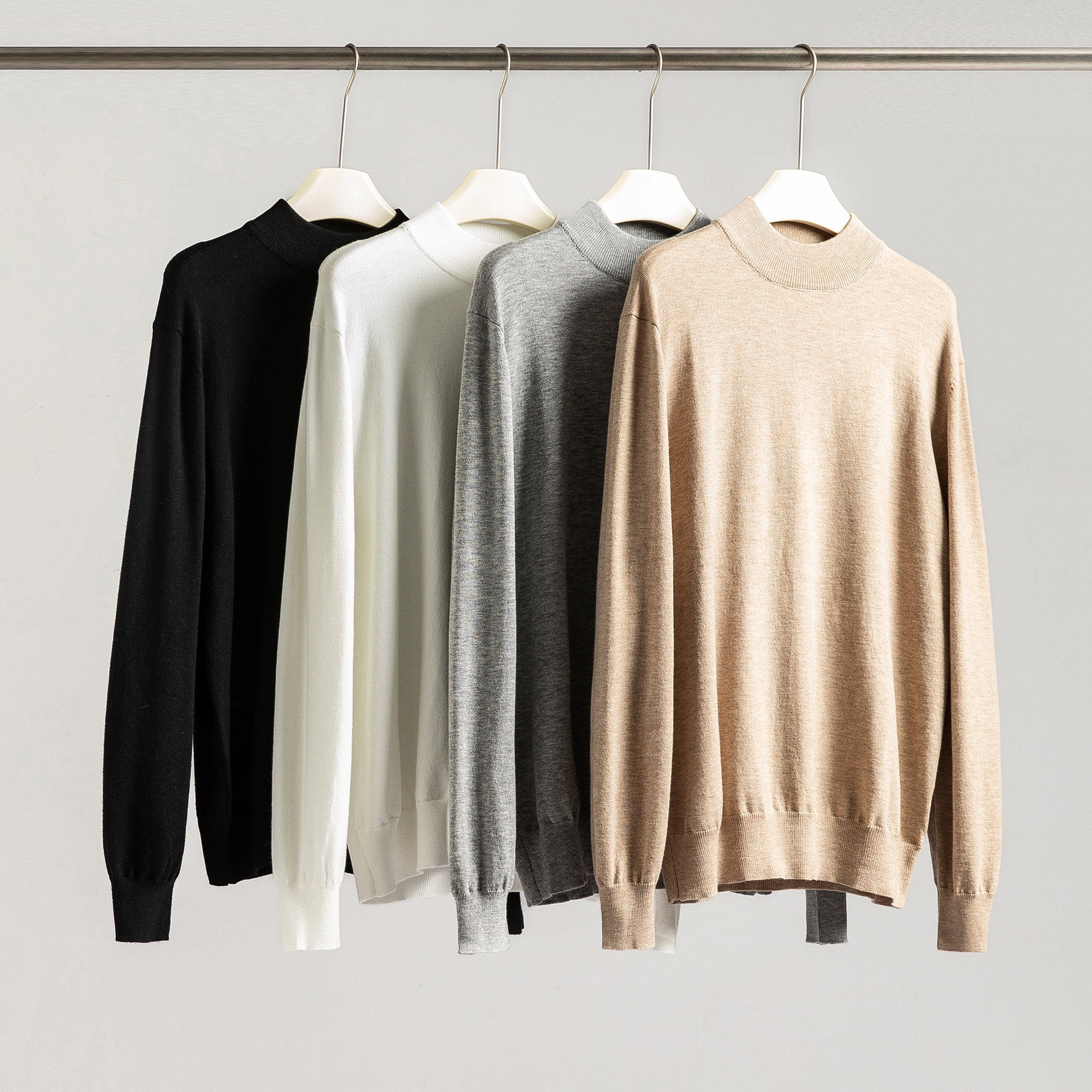 秋冬口粮基础款半高领针织衫男冬季羊毛混纺细纱线柔软打底衫毛衣