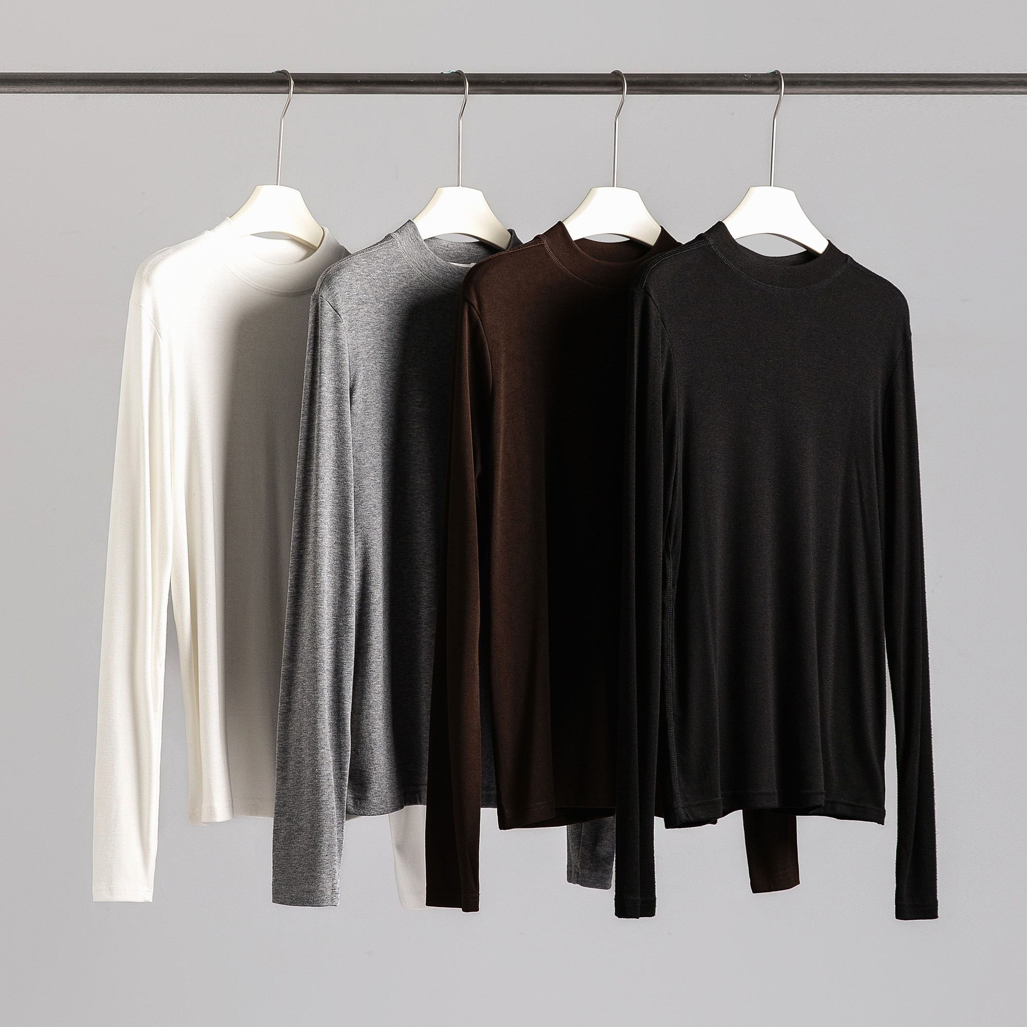 冬季内里加绒加厚半高领长袖T恤男 软糯垂感莫代尔混纺纯色打底衫