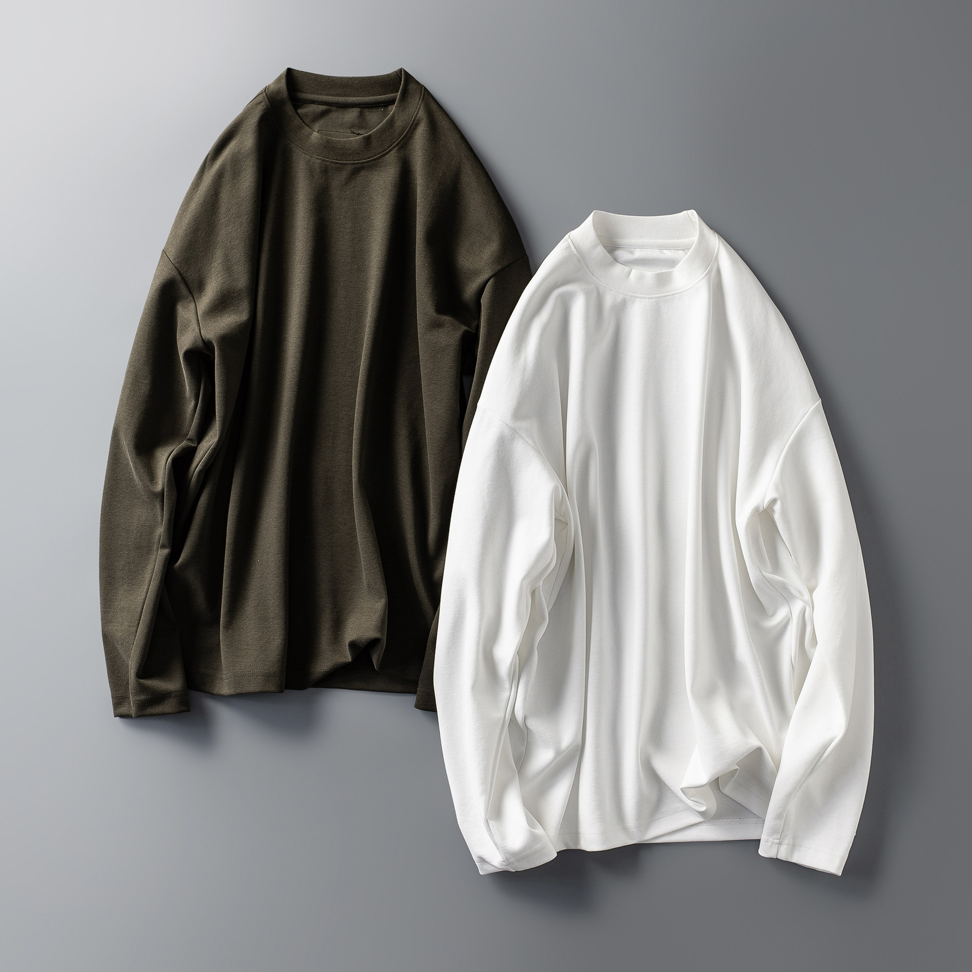 秋季软糯棉混纺圆领长袖T恤男装 老钱风纯色基础款宽松廓形打底衫