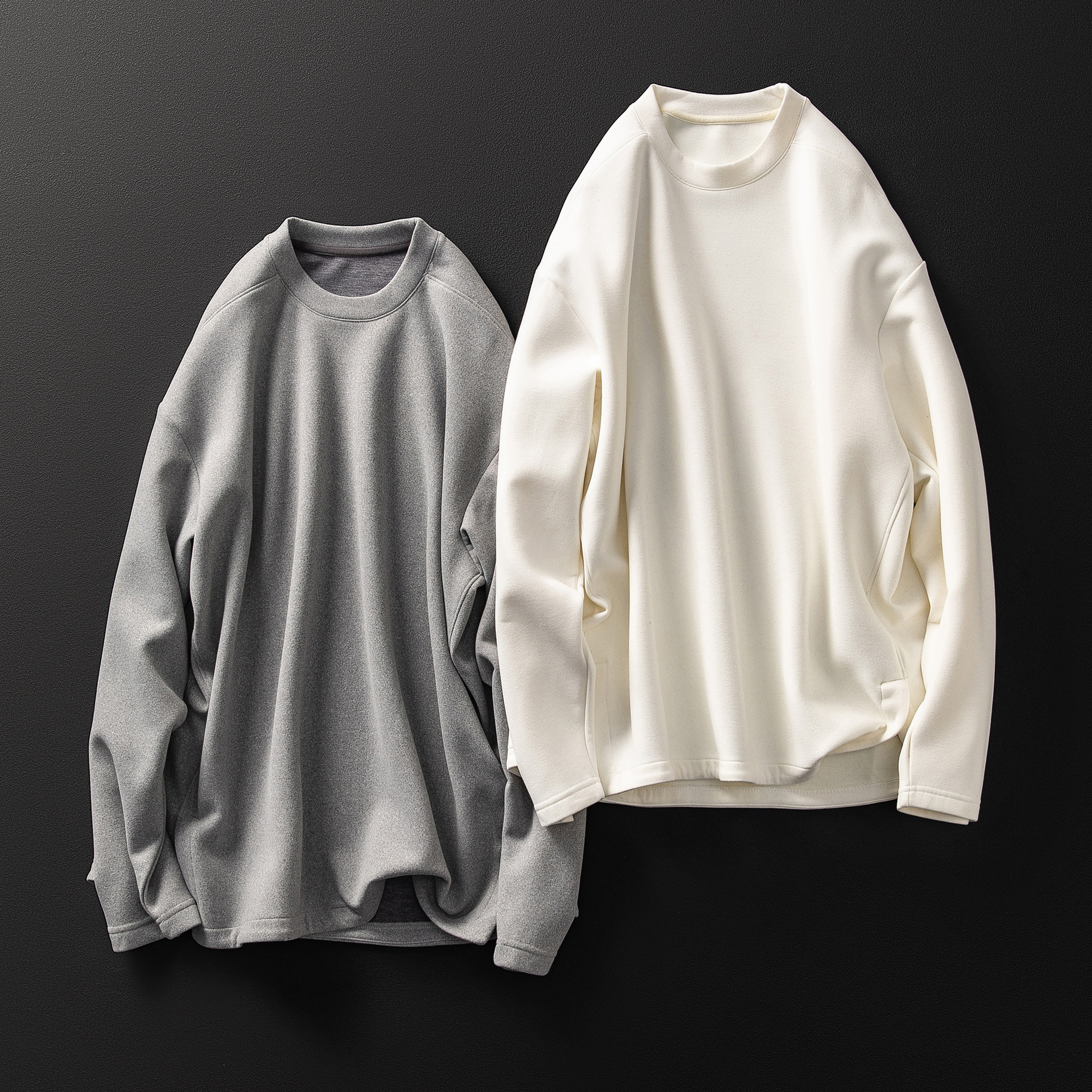 秋冬羊毛混纺软糯亲肤磨毛加厚圆领长袖T恤男 宽松开叉下摆打底衫