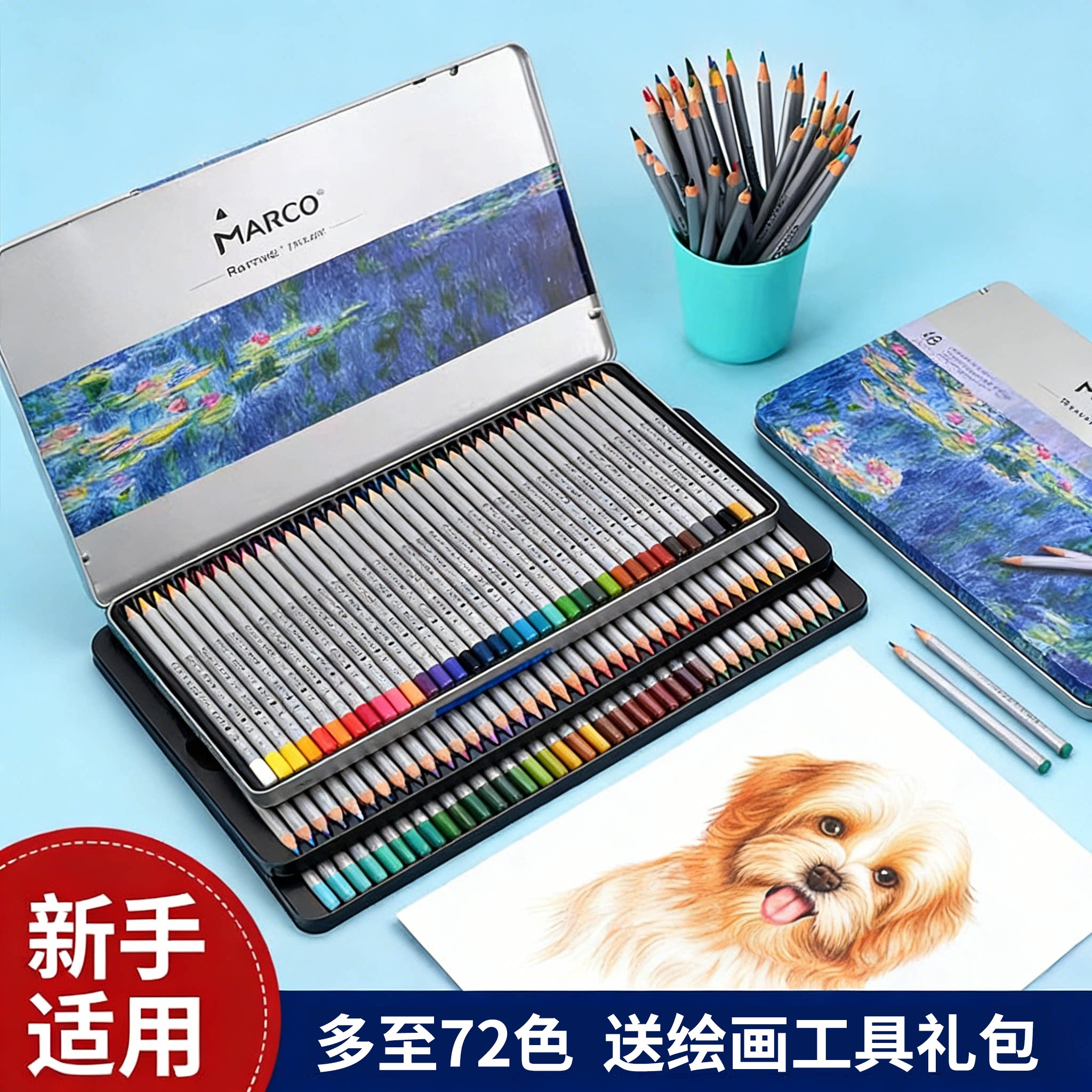 Marco马可清仓彩色画笔雷诺阿画画油性水溶款72色24色/36色/48彩铅笔专业彩绘套装铅笔24色/36色/48色彩铅笔