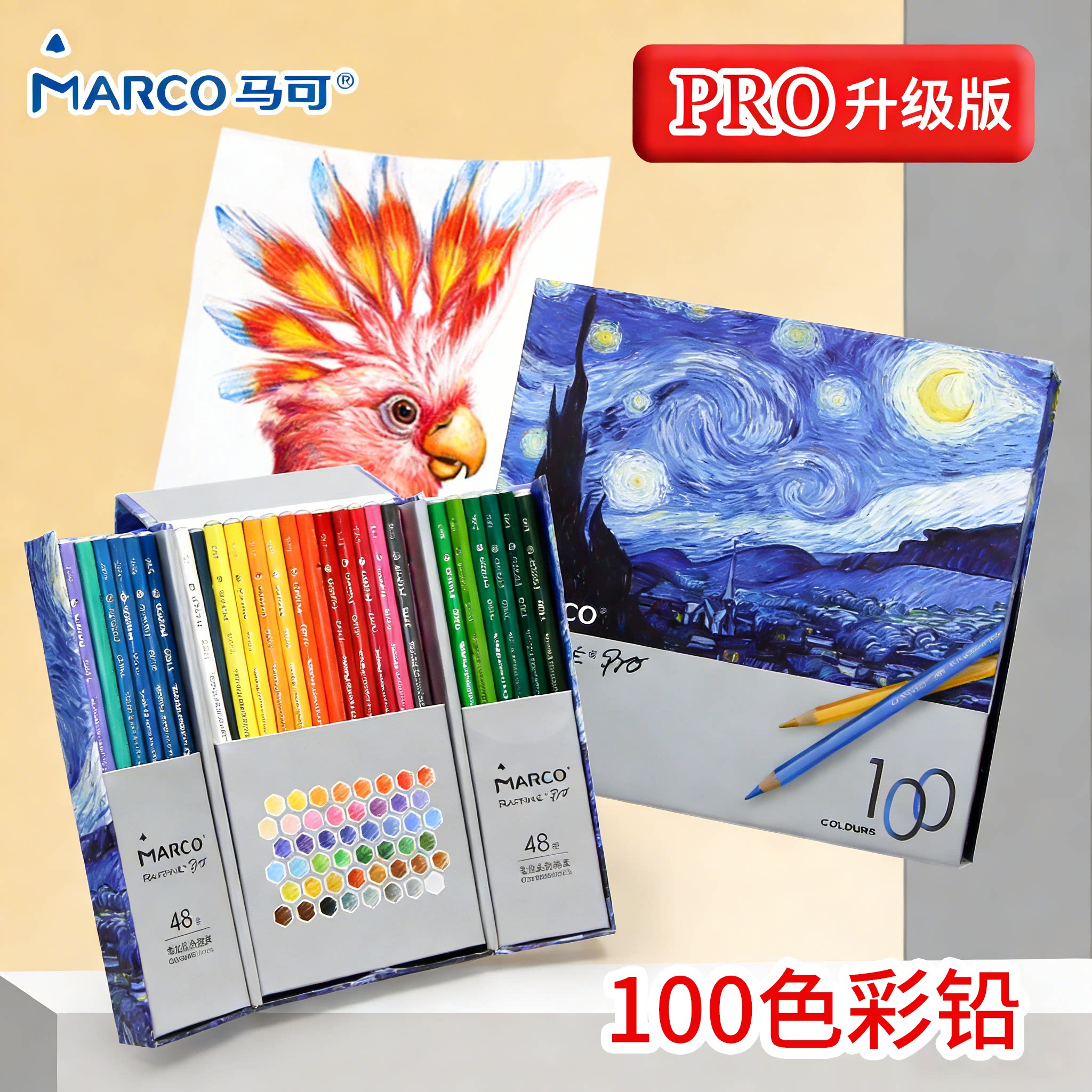 MARCO马可拉菲尼彩铅Pro升级版100色彩色铅笔48色7100油性专业36色学生用72色美术生儿童手绘画画专用笔套装
