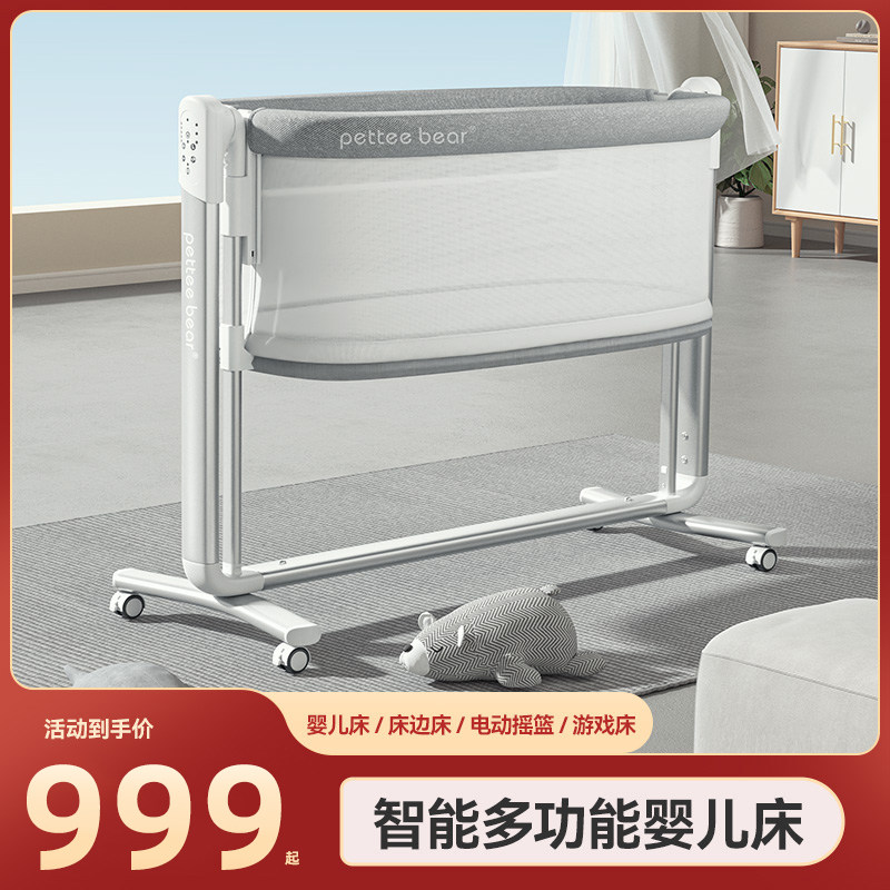 智能电动婴儿摇篮床多功能哄睡安抚可移动新生儿摇摇篮床拼接大床