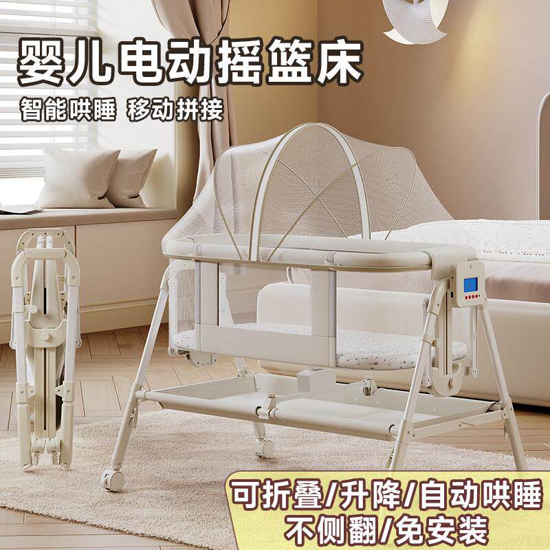 电动自动婴儿床多功能折叠新生儿摇篮床可移动拼接大床带滚轮智能
