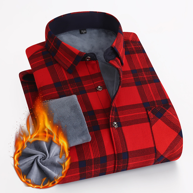 秋冬季男士保暖衬衫加绒加厚款长袖修身潮格子男装父亲老人花衬衣