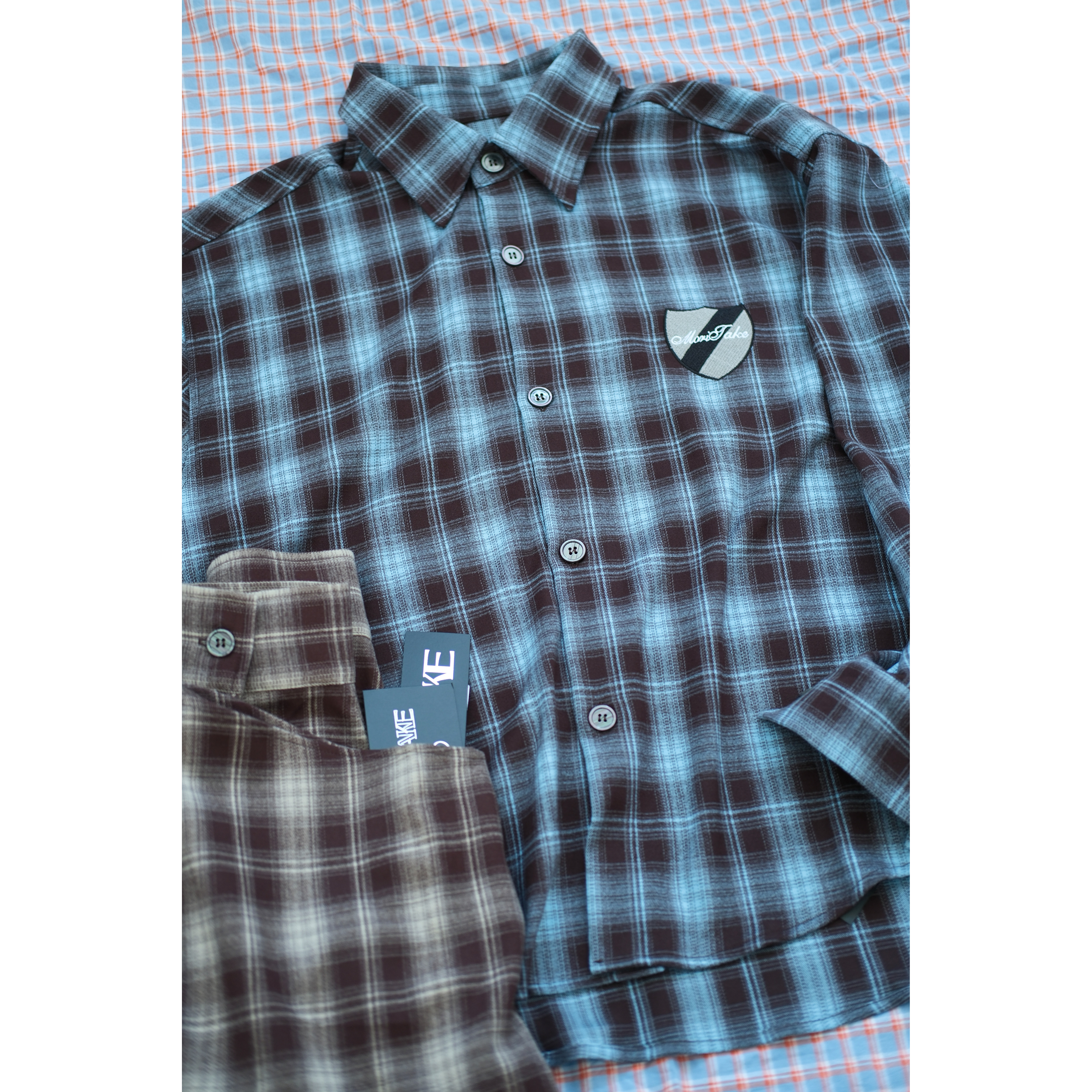 GRAILZ LEARL 双面可穿廓形蓝色格纹格子衫棉服纯棉外套VIBE夹克