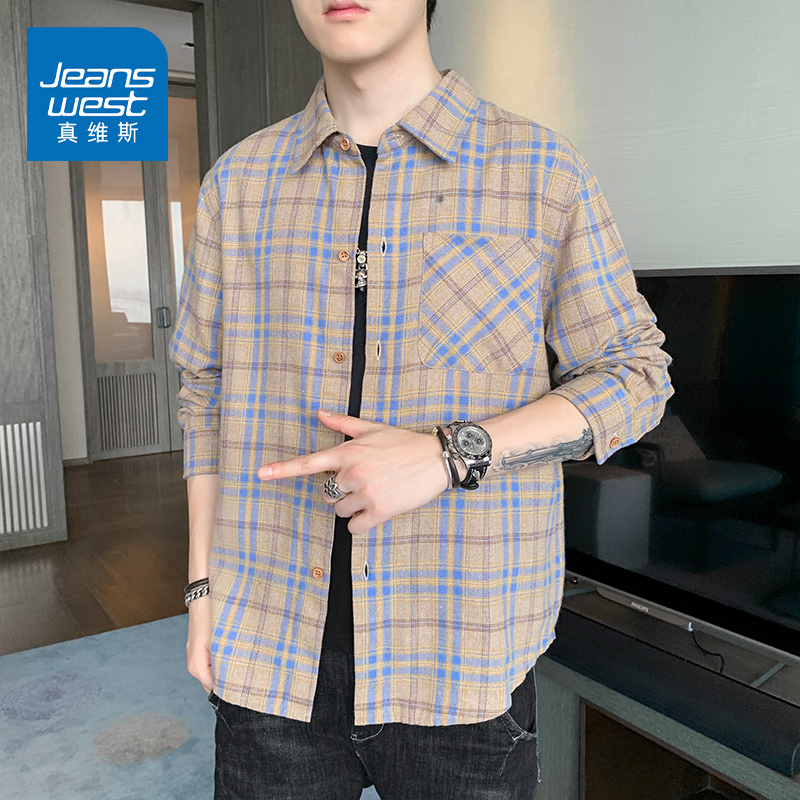 KZ真维斯港风潮牌格子衫男士内搭衬衫衬衣外穿薄外套春秋季上衣服