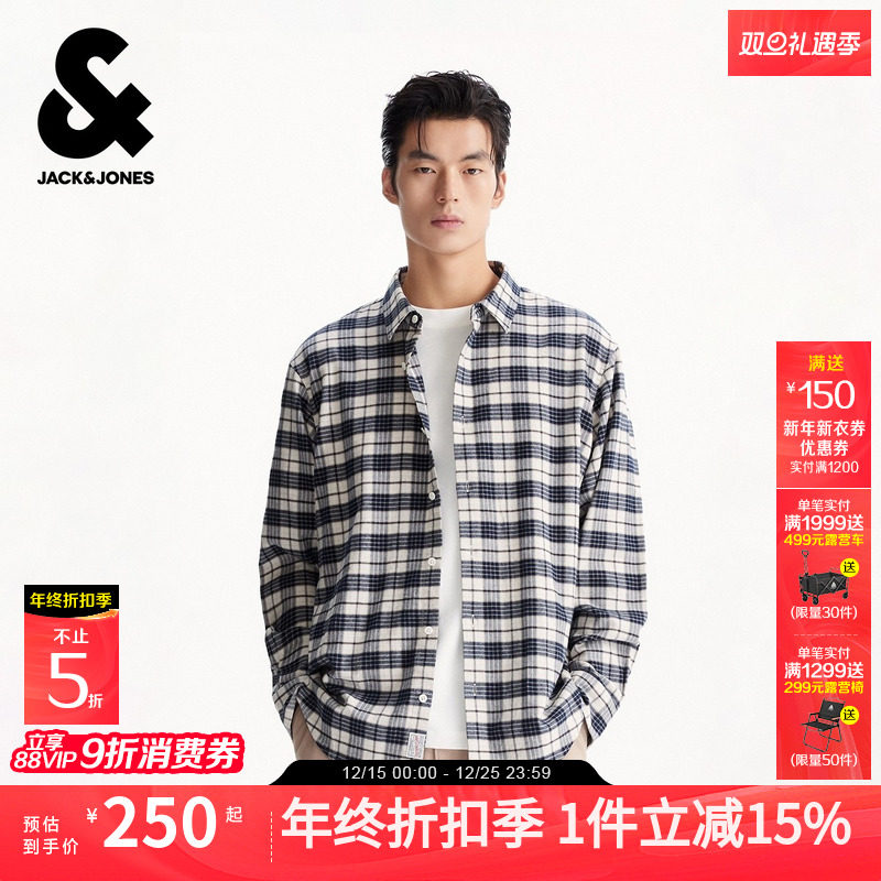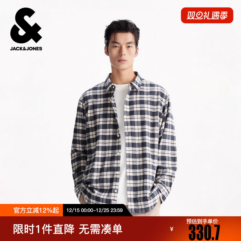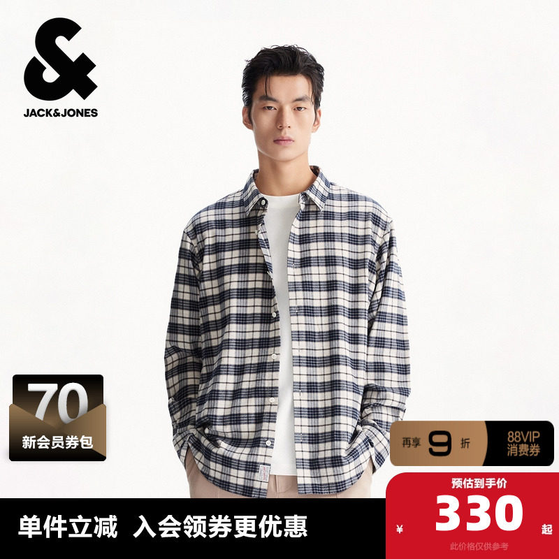 杰克琼斯秋季男装长袖衬衫格子衫男装外套休闲百搭潮流宽松设计感