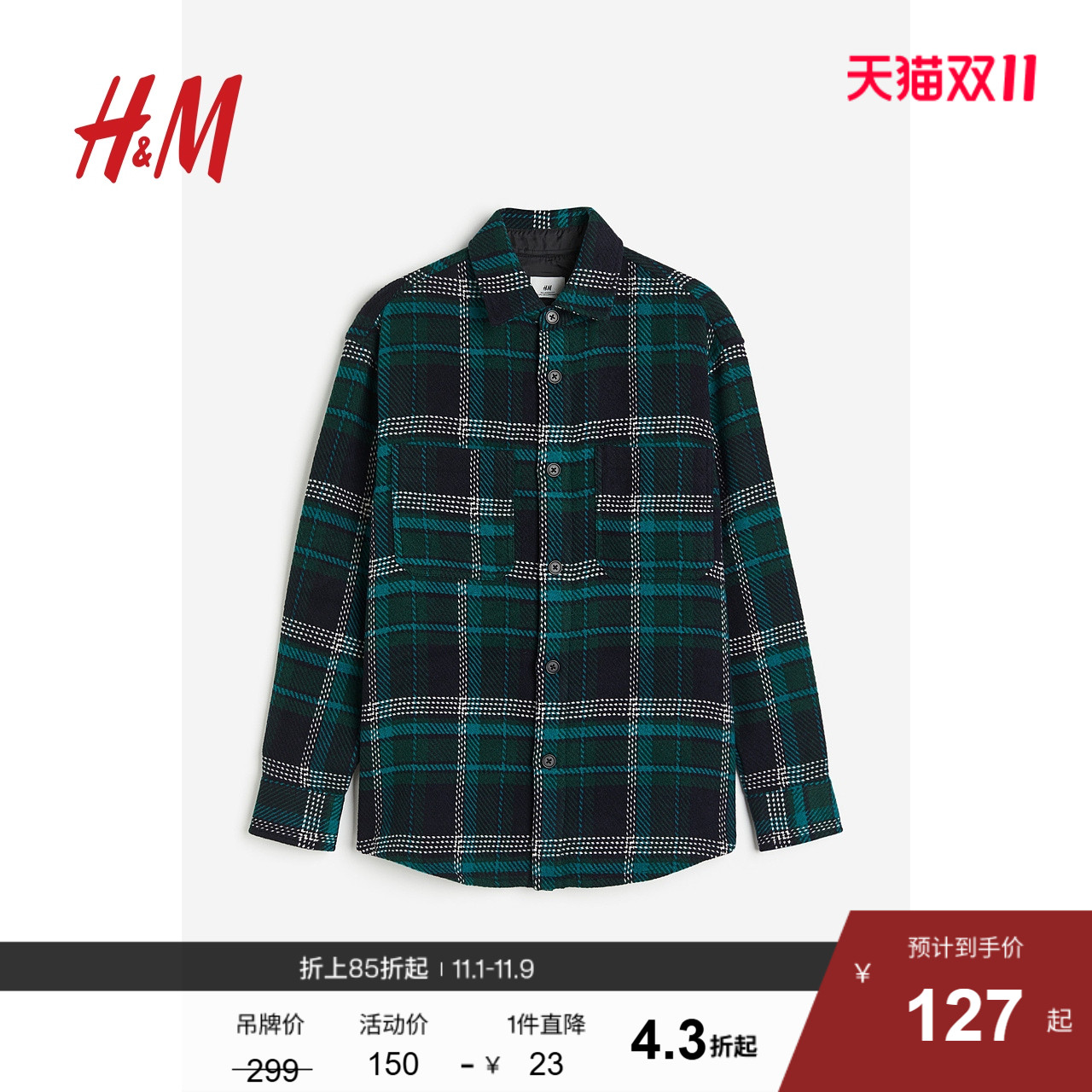 HM男装衬衫美式复古格子衫男士秋季格纹长袖外套休闲衬衣1193431