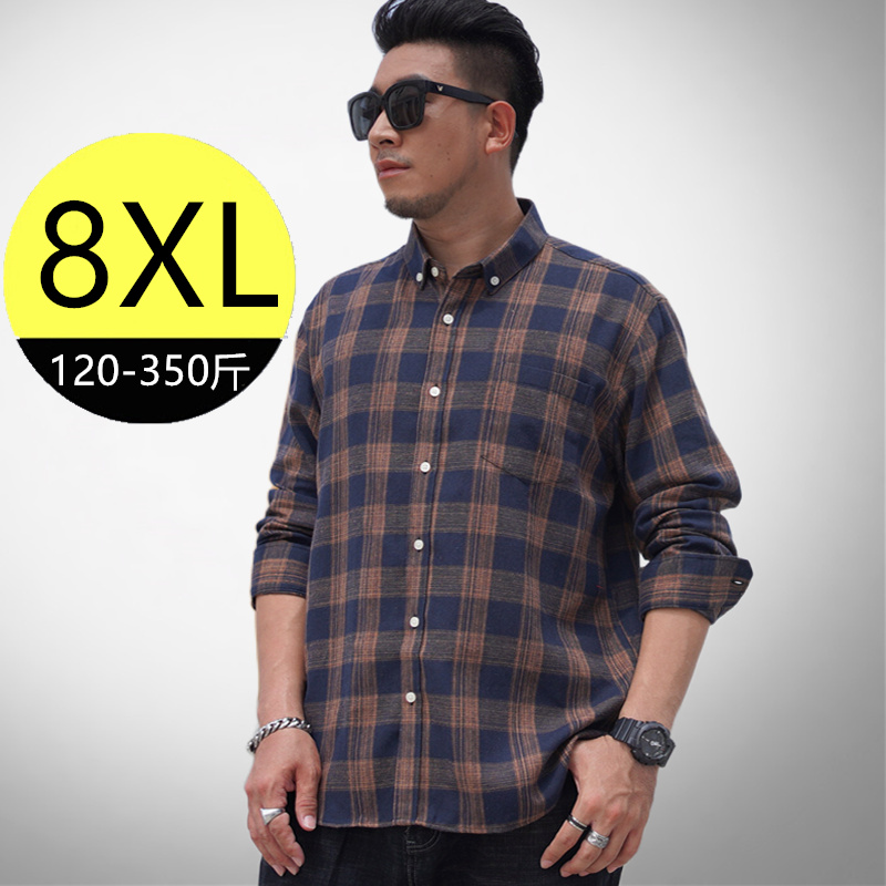 男士加大码格子衫长袖衬衫秋装加肥休闲真口袋衬衣潮2025肥佬衣服