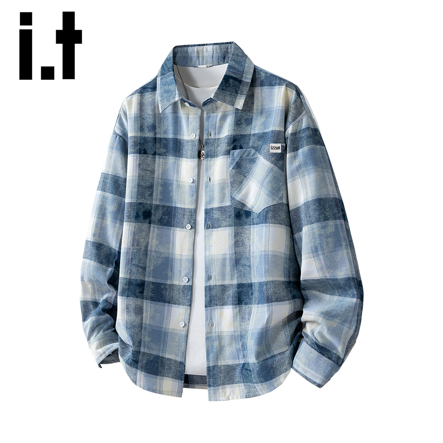 it izzue 复古百搭格子衫男士2025早秋新款潮牌休闲撞色长袖衬衣Y