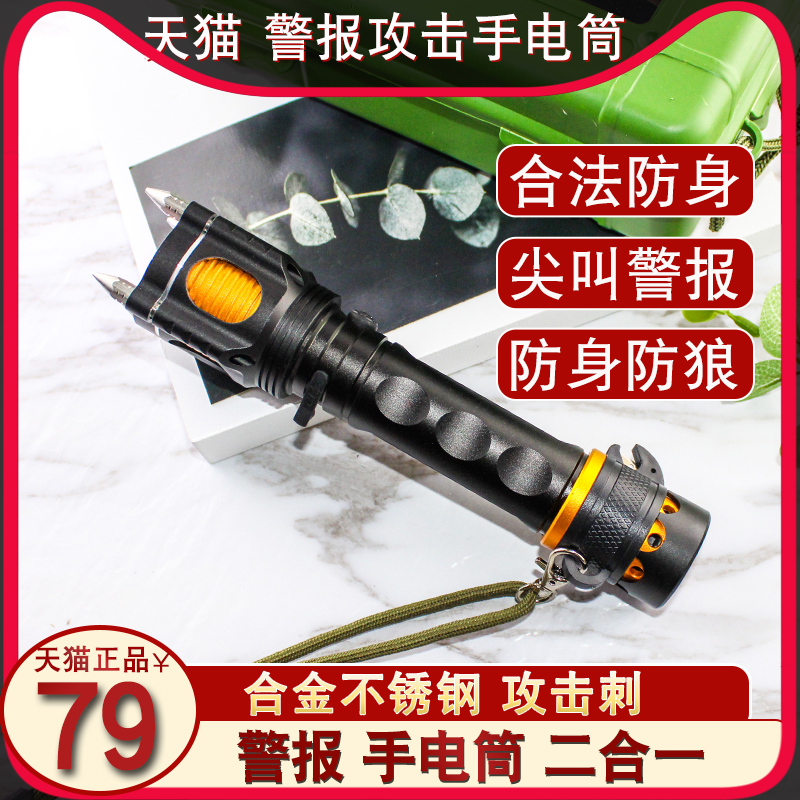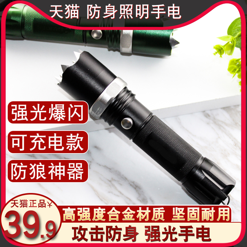户外手电筒强光充电超亮工作灯多功能防身报警器随身合法武器防狼