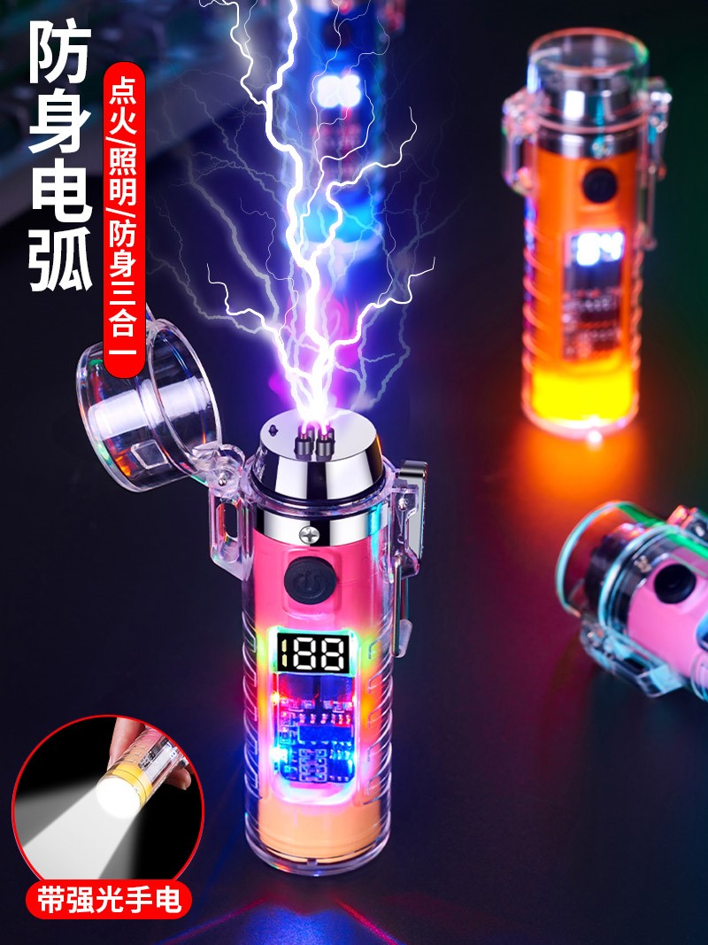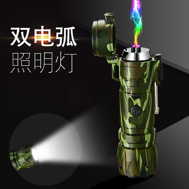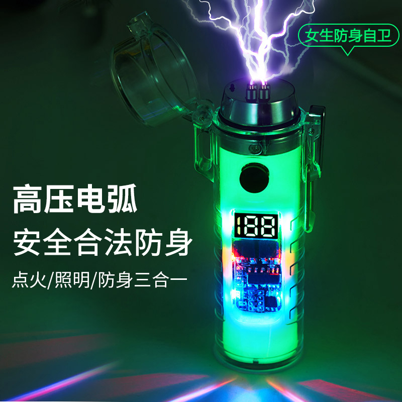电筒电弧手户外防风防水双充电防狼防身武器随身女生神器打火机夜