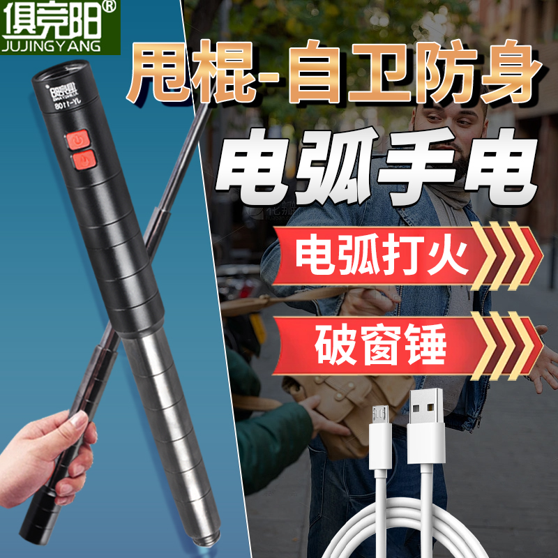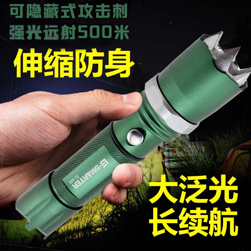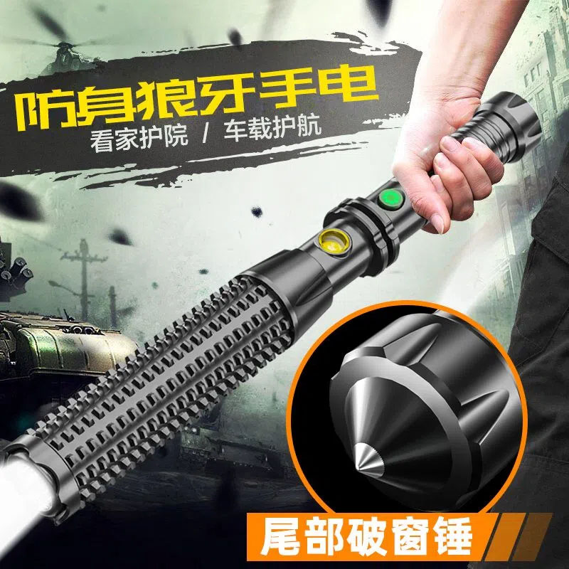 狼牙棒手电筒强光远射充电户外超亮车载变焦伸缩防身自卫合法武器