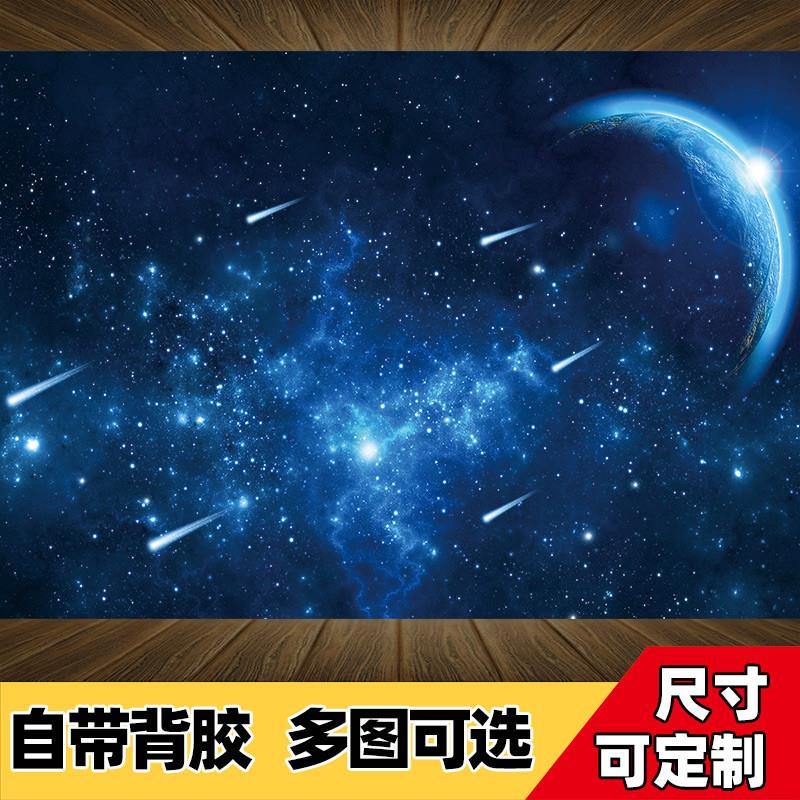 自粘墙纸3d星空顶天花板宇宙卧室背景屋顶男孩儿童房间自贴墙壁纸
