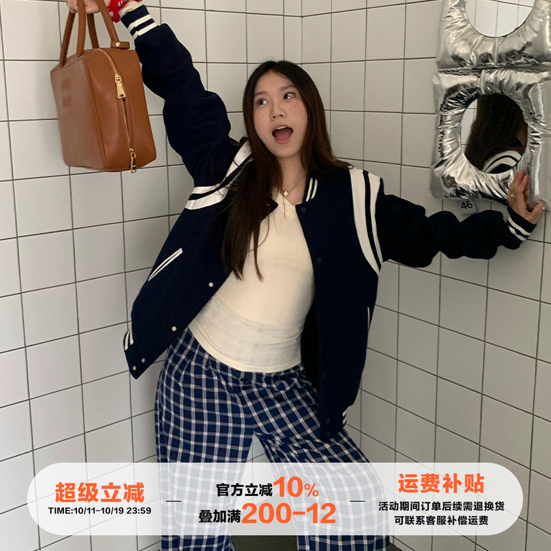 橘子树在哪儿学院风拼接棒球服外套女秋季情侣款宽松休闲夹克上衣