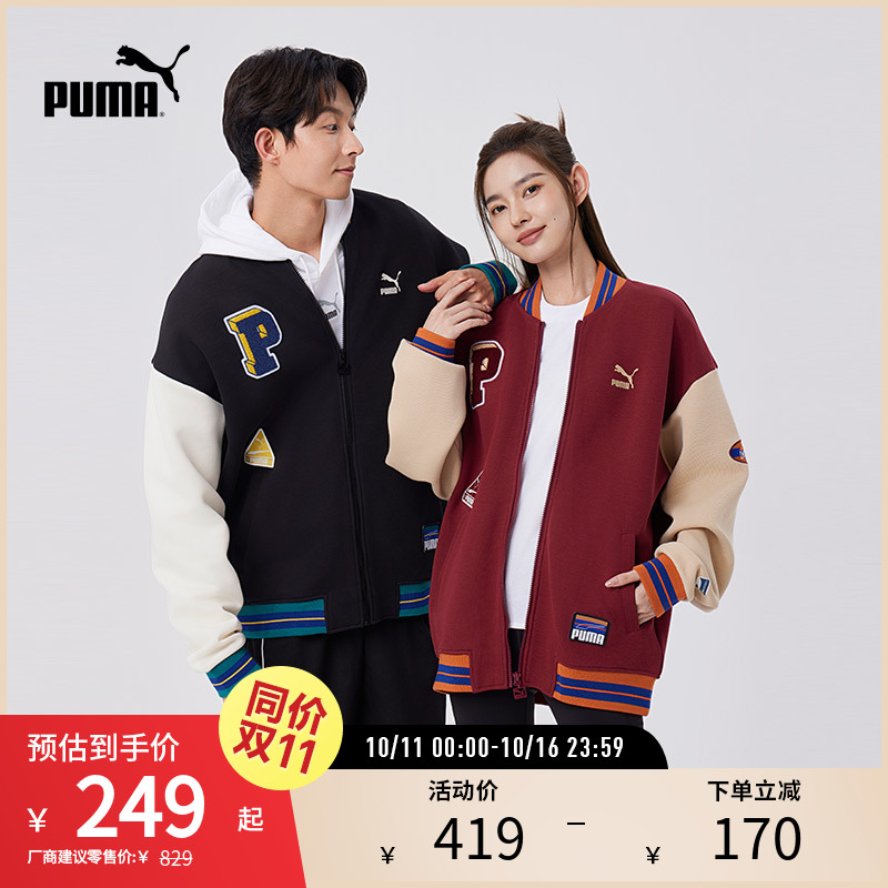 拼色针织夹克外套男女休闲美式复古棒球服677373彪马puma官方奥莱