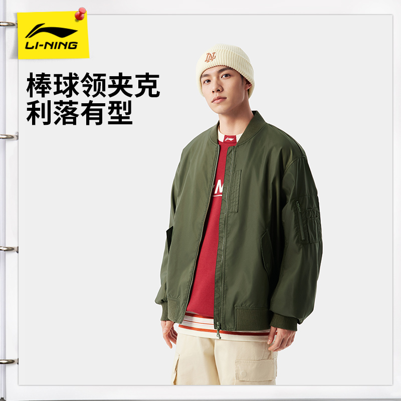 李宁飞行夹克外套男秋冬新款美式绿色棒球服休闲宽松上衣运动服女