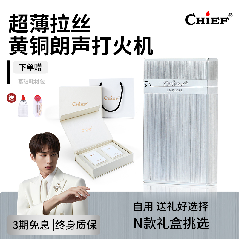 CHIEF首领朗声打火机煤油打火机超薄黄铜防风送礼送男友生日礼物