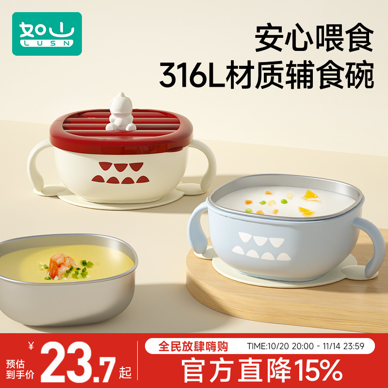 如山宝宝辅食碗婴儿专用喝汤碗儿童吃饭碗外出餐具316L不锈钢碗