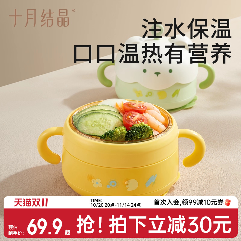 十月结晶宝宝辅食碗婴儿专用注水保温碗吃米粉恒温不锈钢儿童餐具