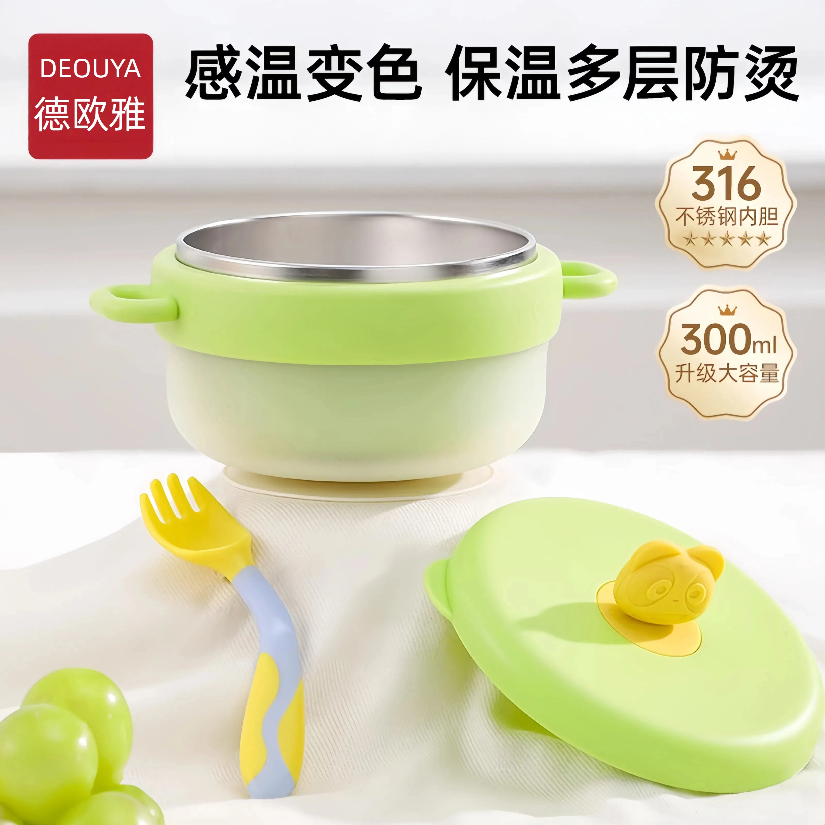 波咯咯宝宝辅食碗婴儿吃米粉专用不锈钢吸盘儿童餐具恒温注水保温