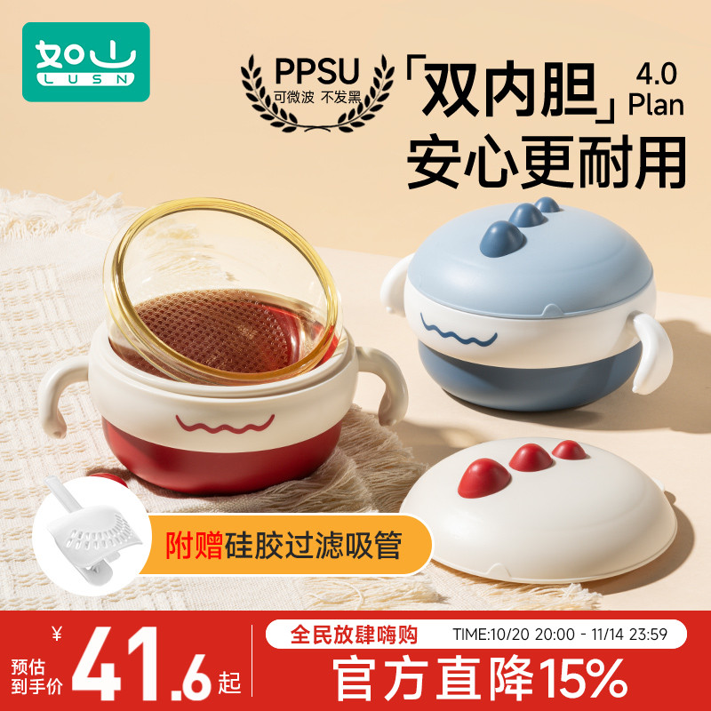 如山ppsu宝宝辅食碗婴幼儿吃饭专用防摔恒温碗儿童餐具注水保温碗
