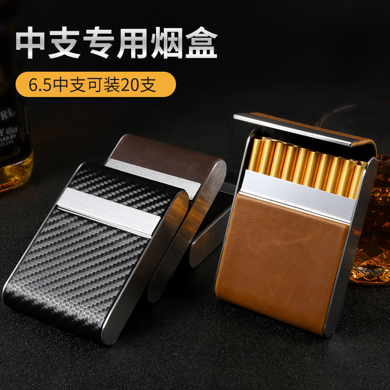 20支装手卷6.5mm中支烟烟盒男士金属加厚不锈钢烟盒中粗便携烟具