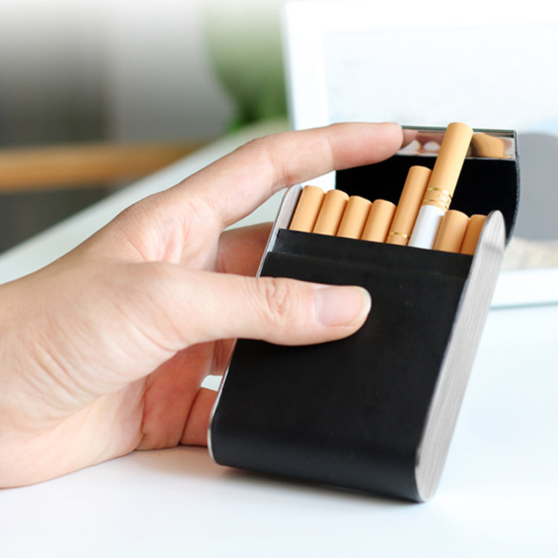 不锈钢皮质烟盒20支装便携男士创意礼品时尚金属铁香菸盒防压烟夹