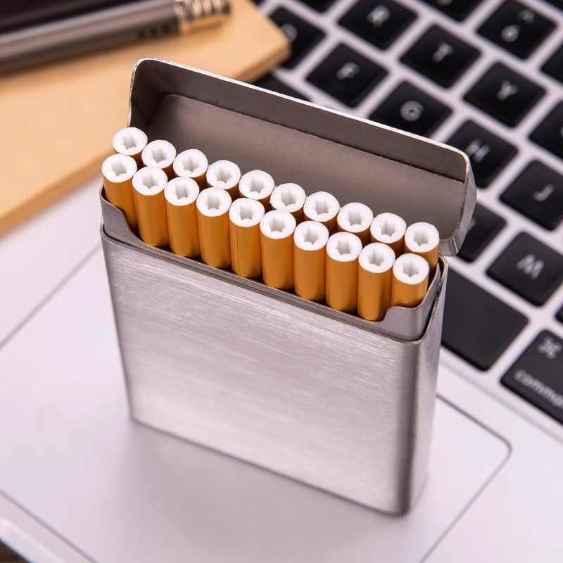 20支装不锈钢烟盒光面便携式抗压金属压片粗烟中支烟两用大容量