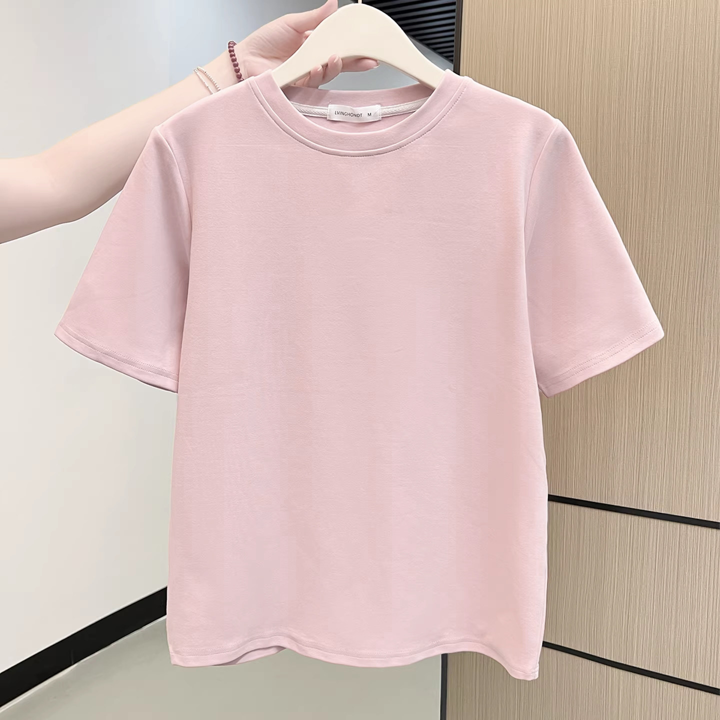 322WORKHOUSE纯色短袖女士2025新款春夏小个子宽松圆领薄款T恤R02