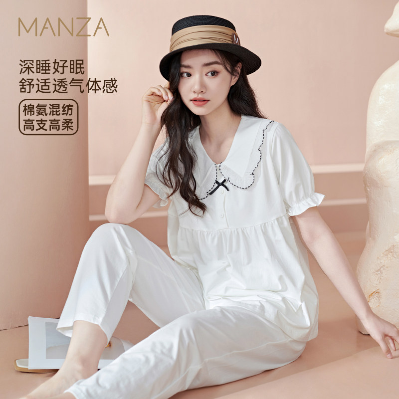 玛伦萨【5A抗菌】睡衣女纯棉夏季薄款大码纯色短袖女士家居服套装