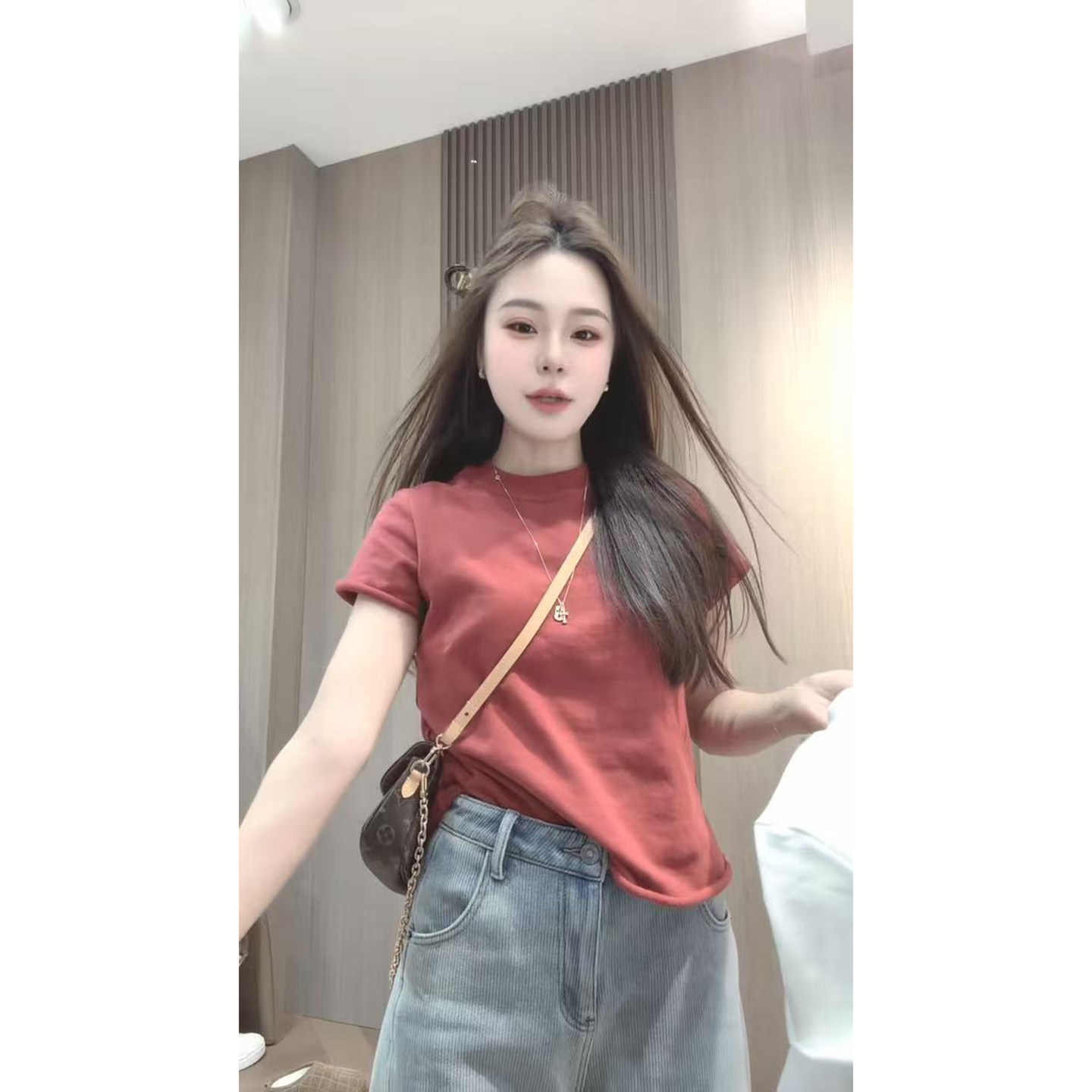 AMR UU◆柜上800+闭眼入~品质感棉质圆领纯色短袖女T恤春夏新款