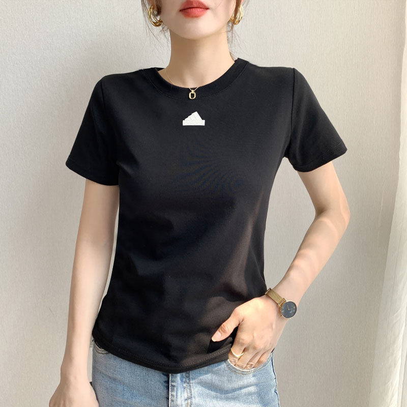 阿迪达斯T恤女夏季新款复古上衣简约百搭修身显瘦运动纯色短袖女